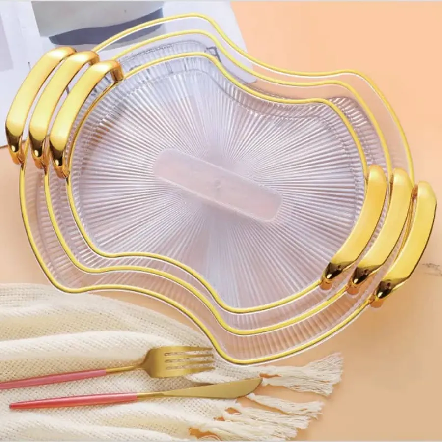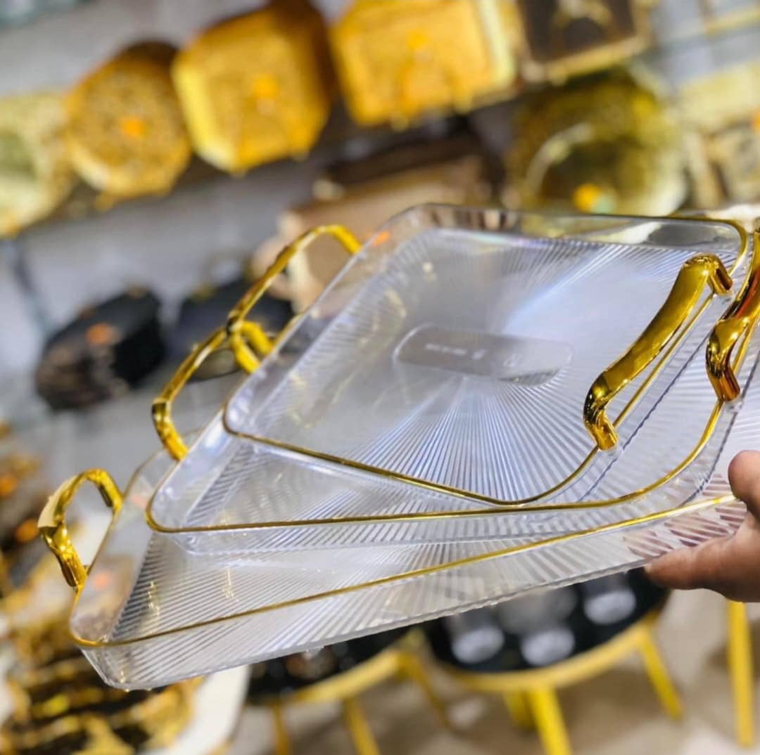 * صحون تقديم اكلريك بيدين ذهبي 😍