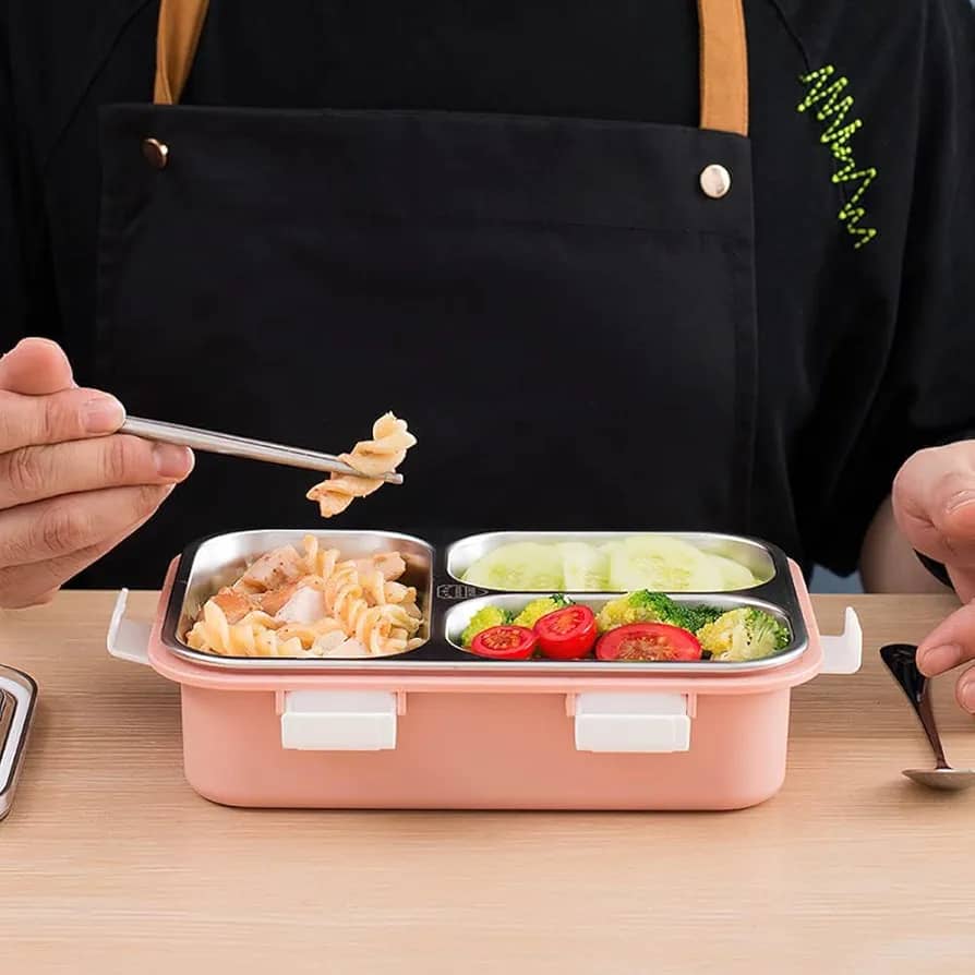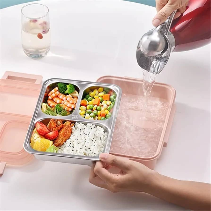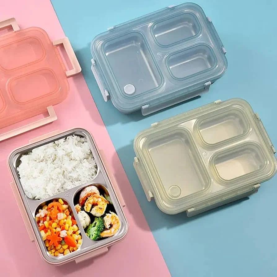 *لانش بوكس مقسم استيل ملبس بلاستيك بقفل 😍