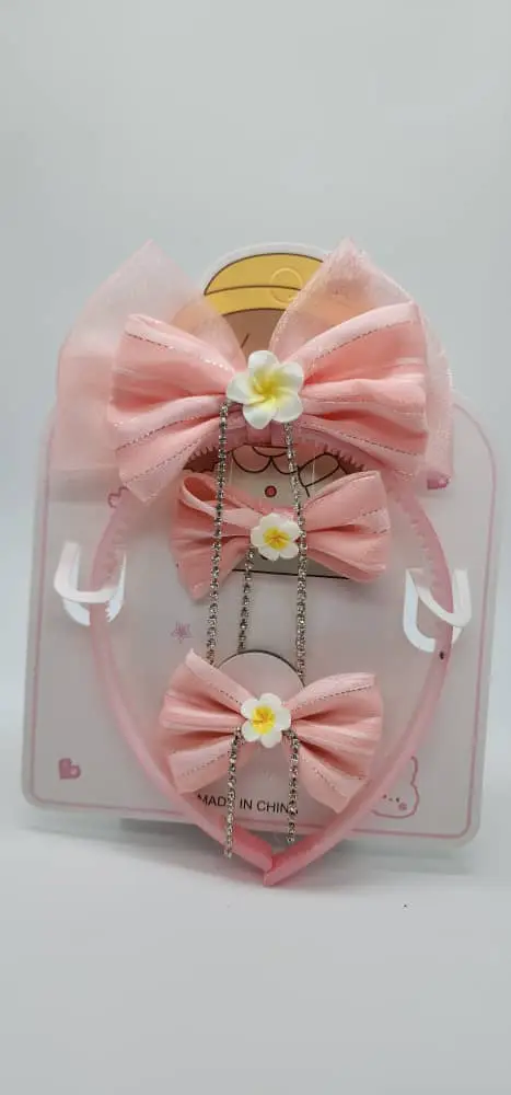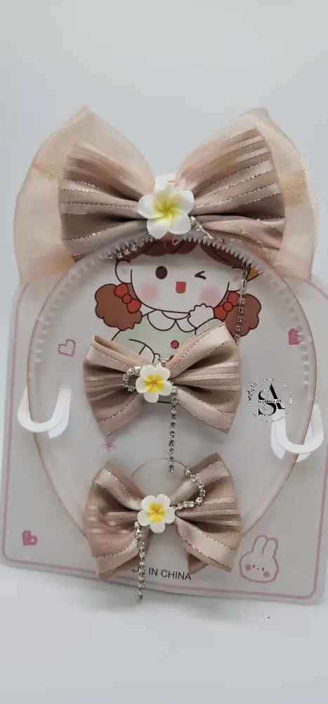اختاري لطفلتكِ أو لنفسكِ لمسة من الجمال والرقي مع طقم الطوق وأبيام الشعر بتصميم عصري أنيق. مصنوع بدقة ليناسب كل المناسبات ويضفي لمسة ناعمة على تسريحة شعرك، مع مزيج مثالي من الراحة والجاذبية.