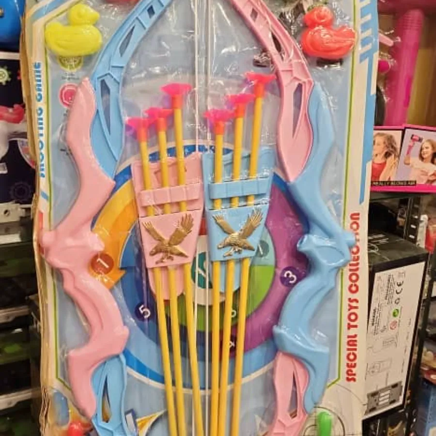 طقم قوس وسهم، ألعاب أطفال، ألعاب تصويب، قوس وسهم بلاستيكي، ألعاب حركية، لعبة مغامرات، ألعاب أولاد آمنة.