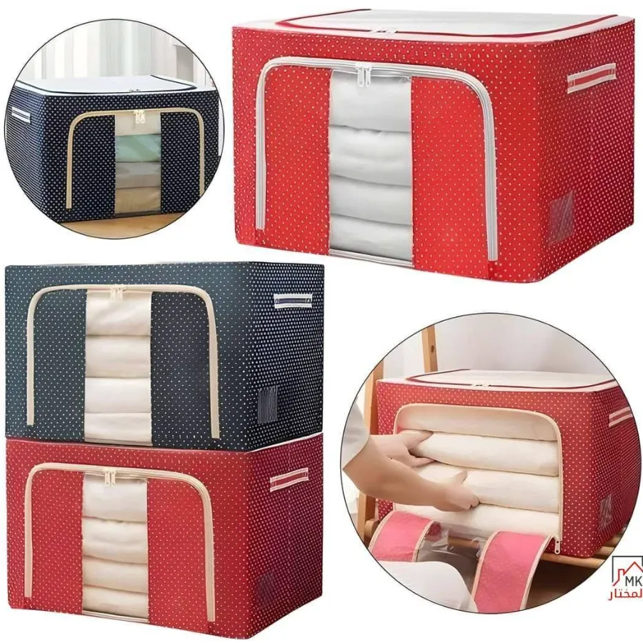 نظم منزلك بذكاء مع صناديق تخزين الملابس القماشية ذات السعة الكبيرة والتصميم القابل للطي! الحل المثالي لتخزين البطانيات، الملابس الموسمية، والمفروشات بطريقة مرتبة ونظيفة. مصنوعة من قماش أكسفورد المتين والمقاوم للأتربة، مع سحاب قوي ومقبض جانبي لسهولة النقل.