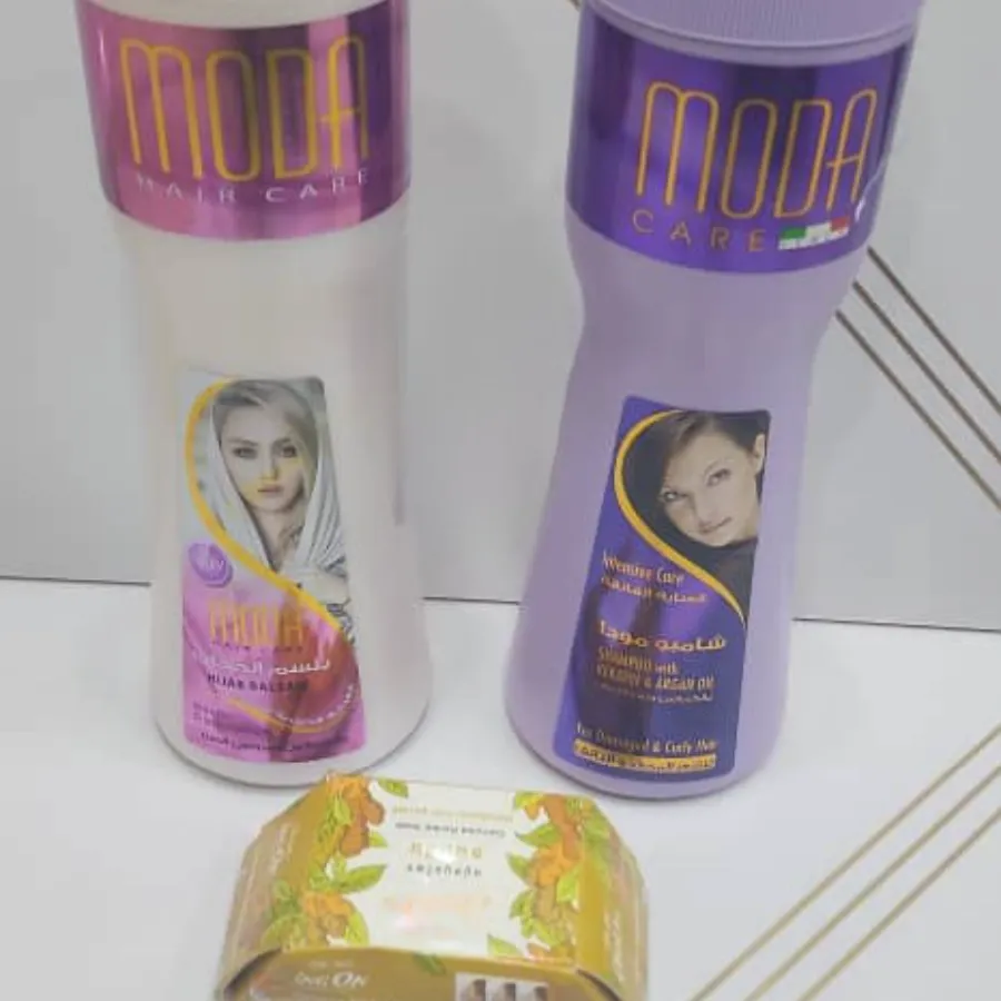 شامبو مودا، بلسم مودا، شامبو وبلسم 1000 مل، صابون كركم طبيعي، تفتيح البشرة، ترطيب الشعر، منتجات عناية، صابون عشبي، طقم عناية بالجسم والشعر.